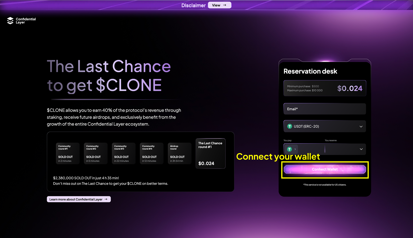 Wait for the official confirmation email from: presale@confidentiallayer.com